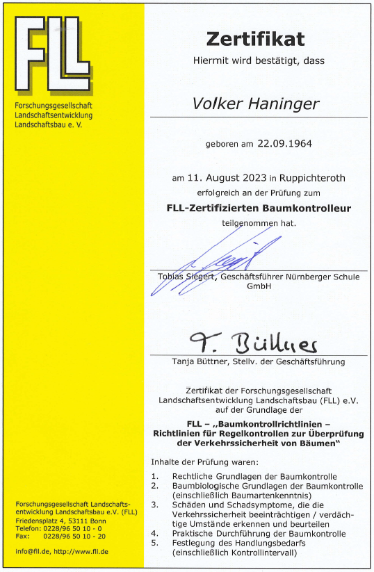 bringt Klarheit. BaumDoc ist FLL-zertifizierter Baumkontrolleur.
