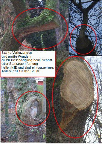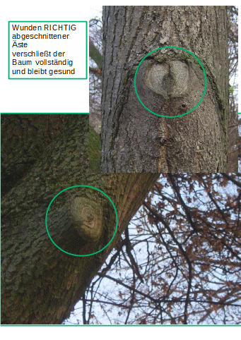 Die natürliche Schnittführung nach Shigo minimiert die Verletzung und erhöht die Selbstheilung des Baumes durch Wundüberwallung und Abschottungsreaktion gegen eindringende Krankheitserreger.