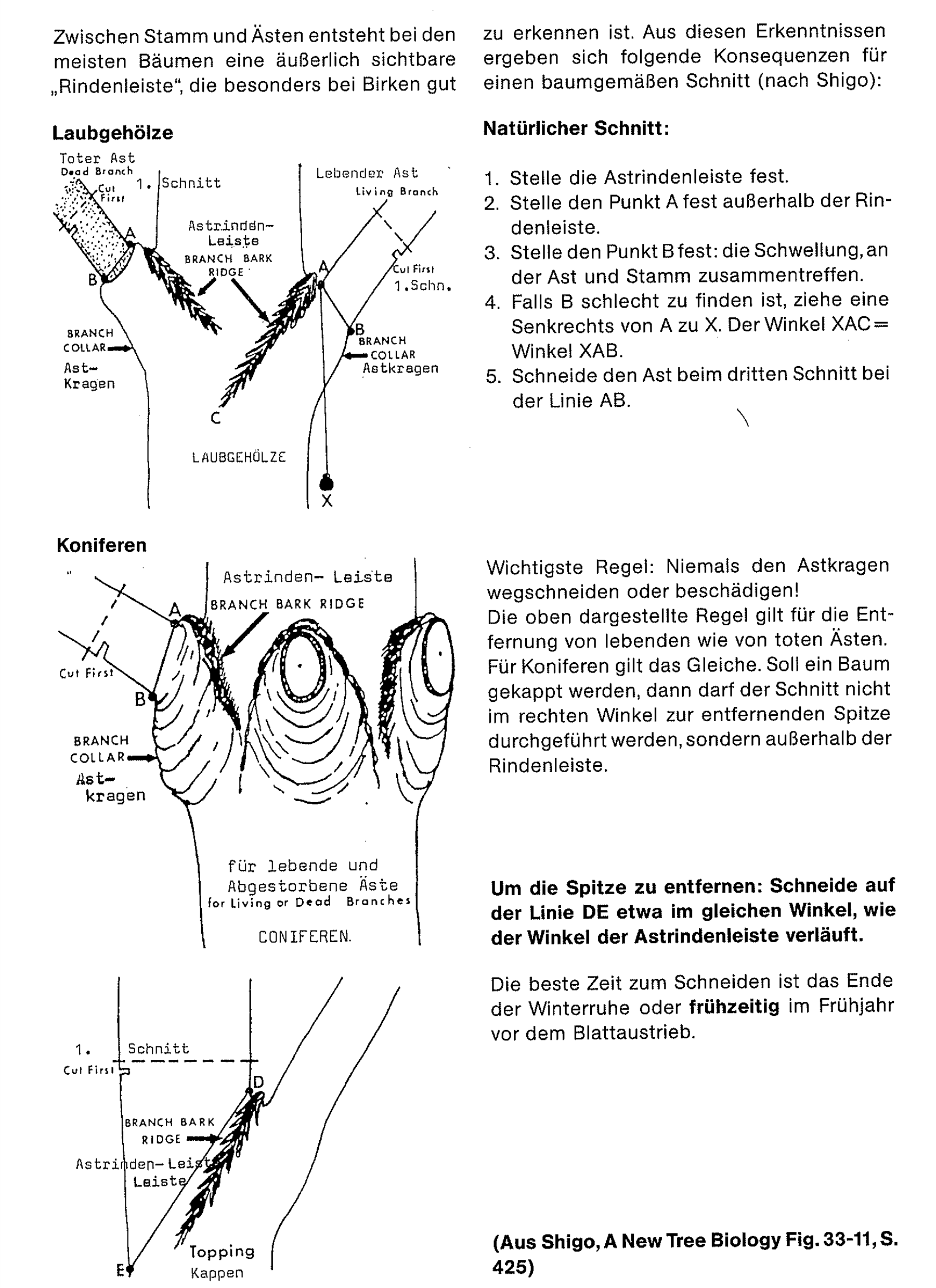 (unten: aus A. Bernatzky, Baumchirurgie und Baumpflege, Thalacker 1988, zitiert aus A. Shigo, Kompartimentierung als Abwehrreaktion bei Bäumen, Spektrum der Wissenschaft VII 1985)